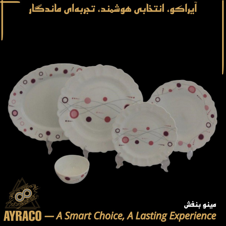 سرویس غذاخوری ۲۵ پارچه آرکوپال گرد کنگره ۶ نفره | طرح مینو بنفش | مقاوم، سبک