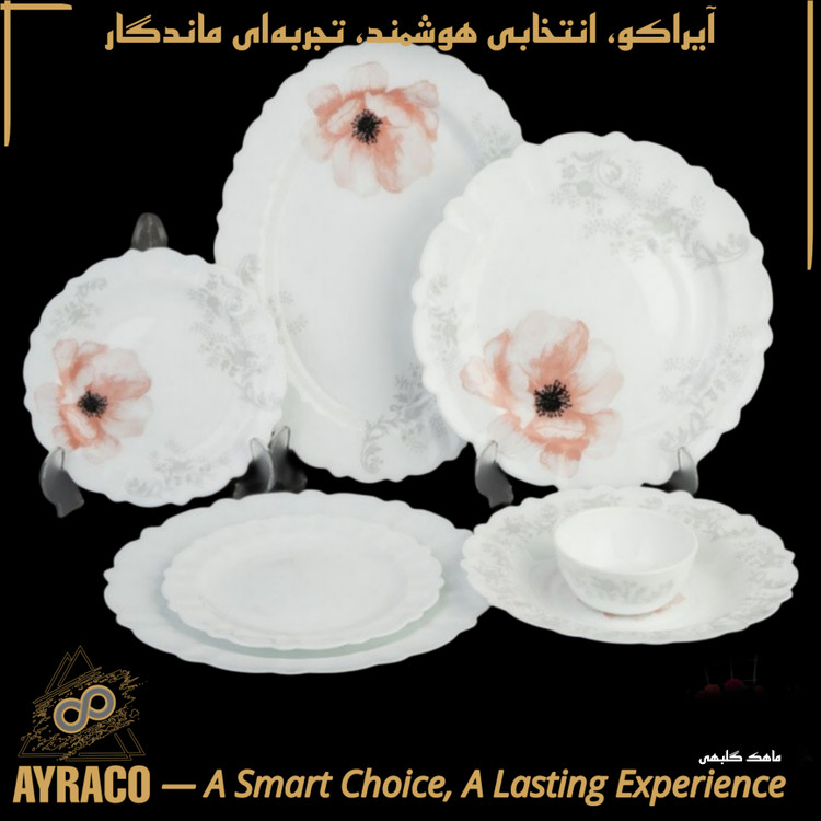 آرکوپال به دلیل ساختار شیشهای خاص خود، در برابر حرارت و شستوشوی مداوم مقاومت فوقالعادهای دارد. قالب گرد این مدل باعث میشود چیدمان ظروف روی میز چشمنوازتر باشد، و طراحی لبههای پیچدار آن جلوهای خاص به غذاخوری میدهد.