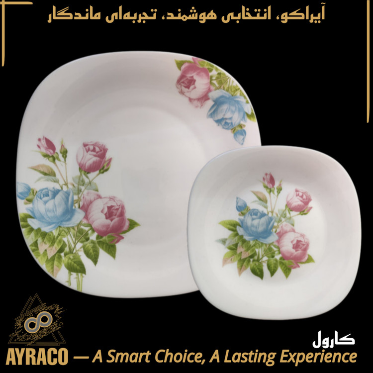 سرویس غذاخوری ۲۶ پارچه آرکوپال مقصود | ۶ نفره قالب مربع کلاسیک | طرح کارول صورتی سبز