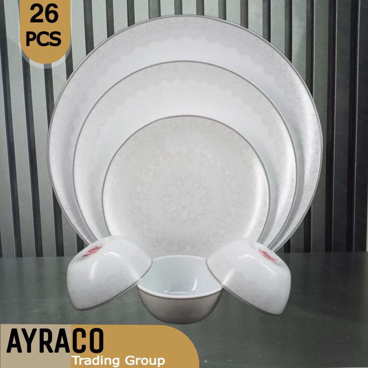 سرویس غذاخوری ۲۶ پارچه آرکوپال مقصود | مناسب خانواده ۶ نفره | طرح سوژا خاکستری | سبک و مقاوم