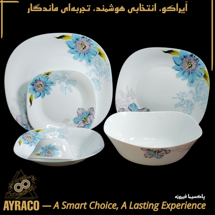 سرویس غذاخوری ۲۶ پارچه آرکوپال مقصود | ۶ نفره قالب مربع کلاسیک | طرح پاکسیما