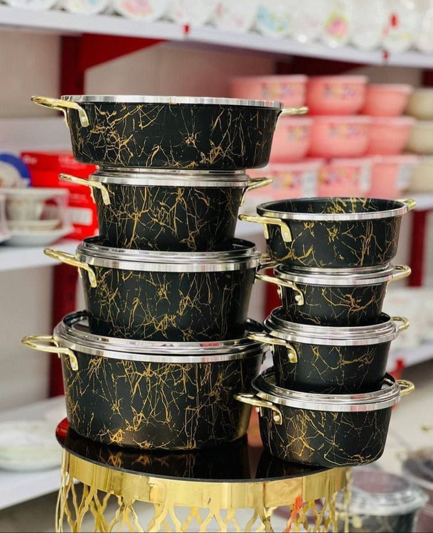 سرویس قابلمه ۱۵ پارچه کوشا مدل ماربل مشکی طلایی– در دو رنگ مشکی طلایی و کرم طلایی