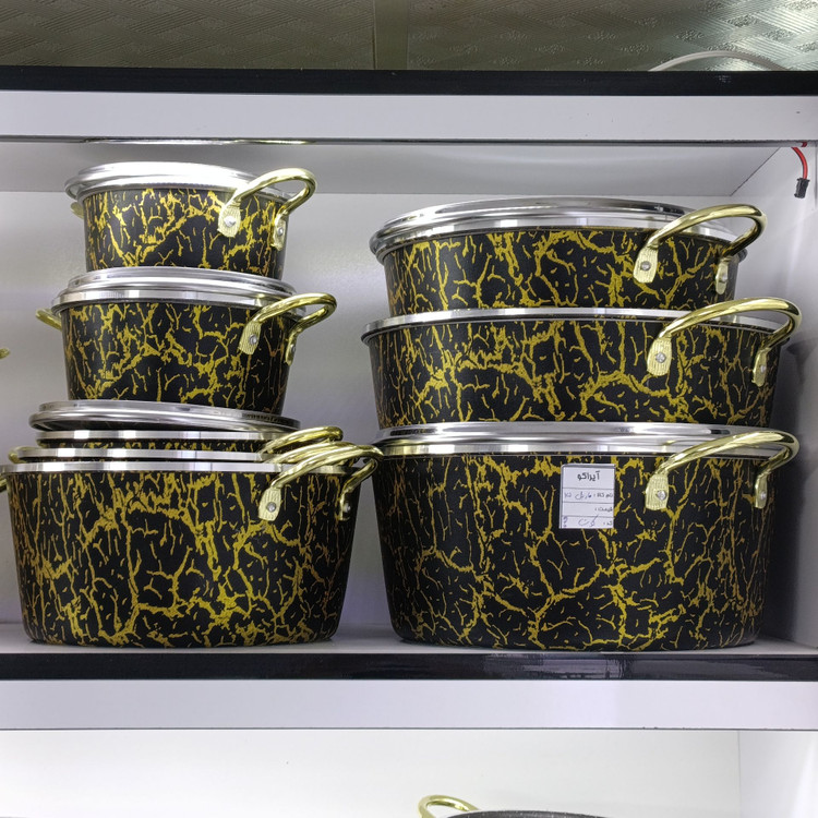 تعداد قطعات: ۱۵ پارچه (۶ قابلمه با درب + ۳ تابه)