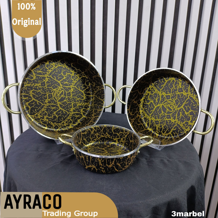 قابلمهها و تابههای این مجموعه از آلومینیوم فشرده با ضخامت بالا ساخته شده و پوشش داخلی آنها از نوع گرانیت ماربل نچسب است که مقاومت بسیار بالایی در برابر خط و خش دارد. این ویژگی باعث میشود حتی پس از استفاده مداوم، غذا به کف قابلمه نچسبد و تمیز کردن ظروف آسان باشد.