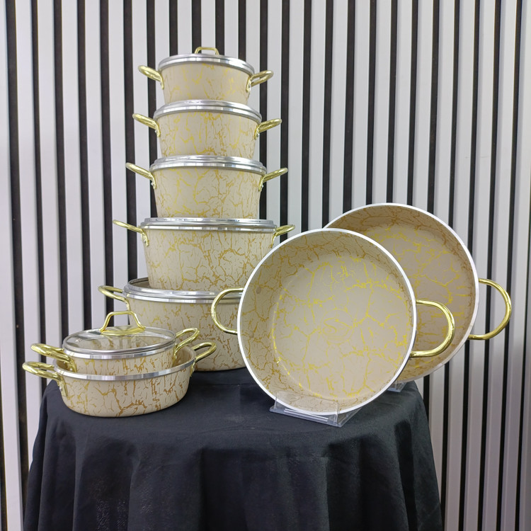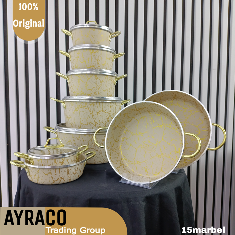 سرویس قابلمه ۱۵ پارچه کوشا مدل ماربل مشکی طلایی– در دو رنگ مشکی طلایی و کرم طلایی
