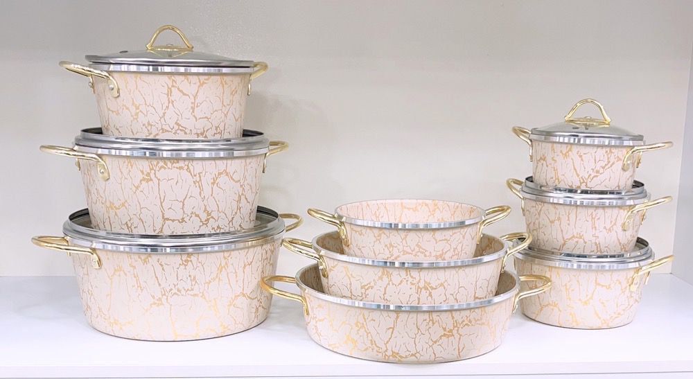 سرویس قابلمه ۷ پارچه کوشا مدل ماربل کرم طلایی – رنگ مشکی طلایی و کرم طلایی |
