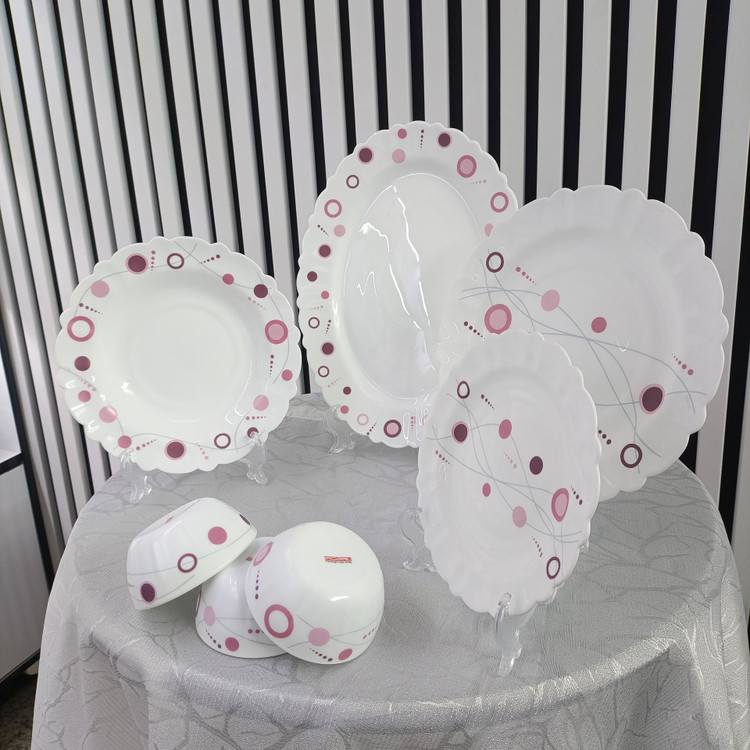 سرویس غذاخوری ۲۵ پارچه آرکوپال مینو بنفش گرد کنگره ۶ نفره | طرح | مقاوم، سبک