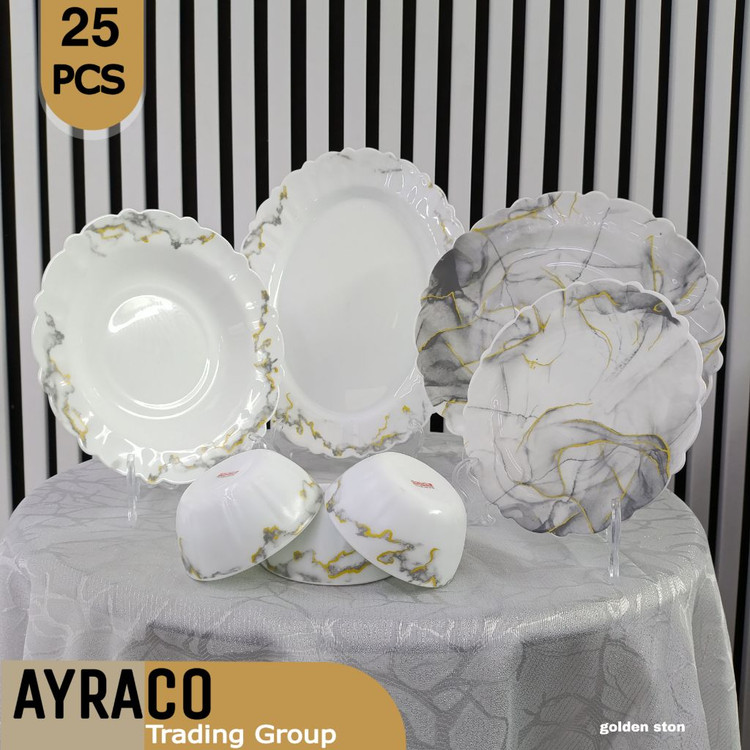 سرویس غذاخوری ۲۵ پارچه آرکوپال گلدن استون گرد کنگره ۶ نفره | طرح | مقاوم، سبک