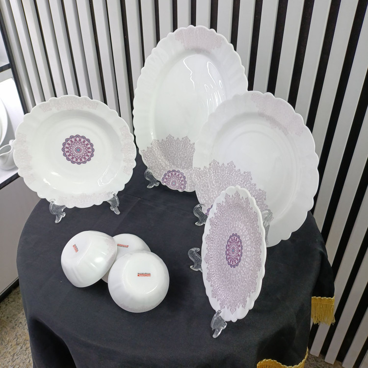 سرویس غذاخوری ۲۵ پارچه آرکوپال ونیز بنفش گرد کنگره ۶ نفره | طرح | مقاوم، سبک