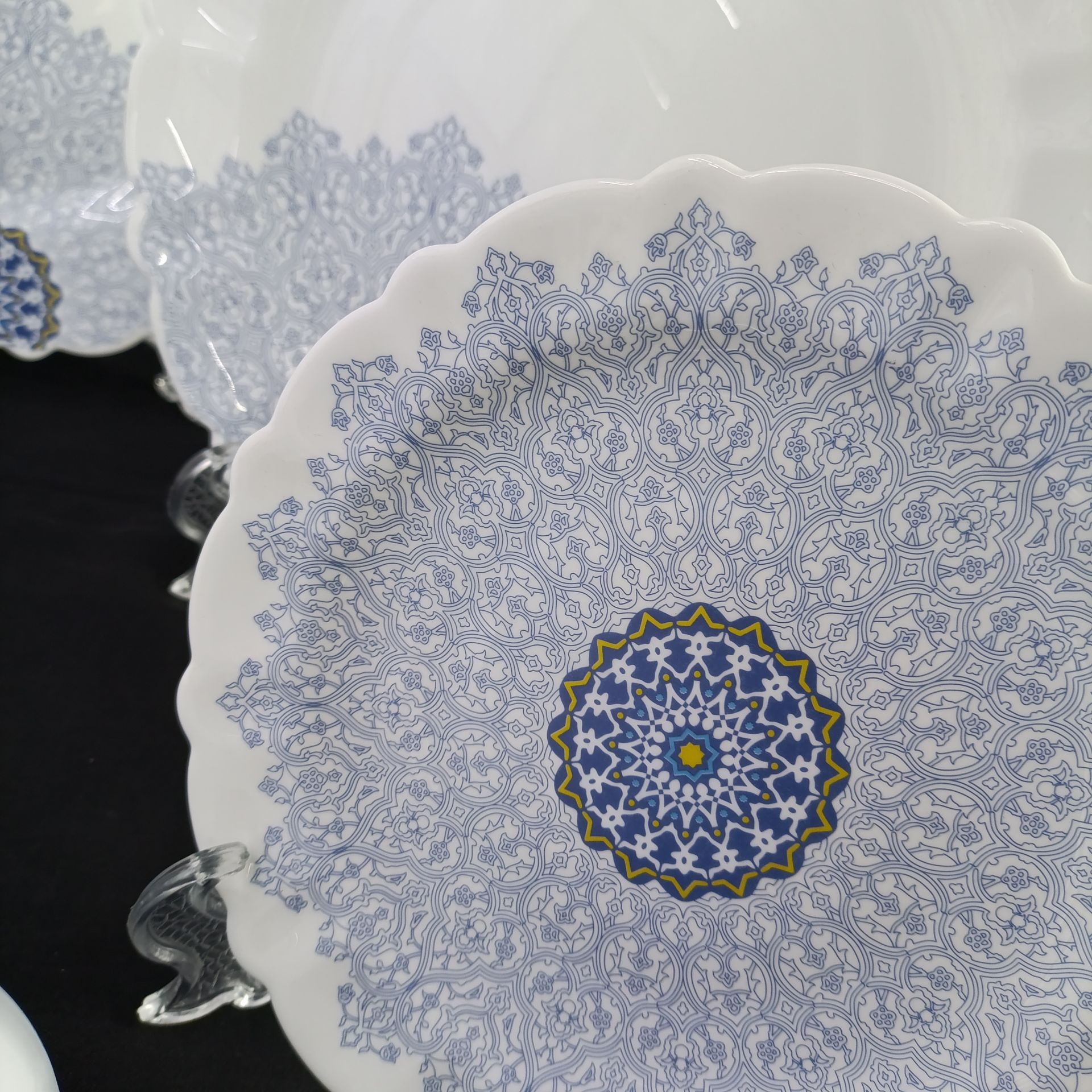 آرکوپال به دلیل ساختار شیشهای خاص خود، در برابر حرارت و شستوشوی مداوم مقاومت فوقالعادهای دارد. قالب گرد این مدل باعث میشود چیدمان ظروف روی میز چشمنوازتر باشد، و طراحی لبههای پیچدار آن جلوهای خاص به غذاخوری میدهد.