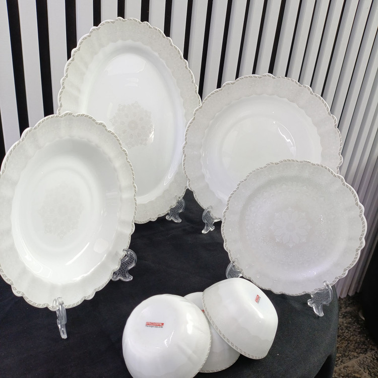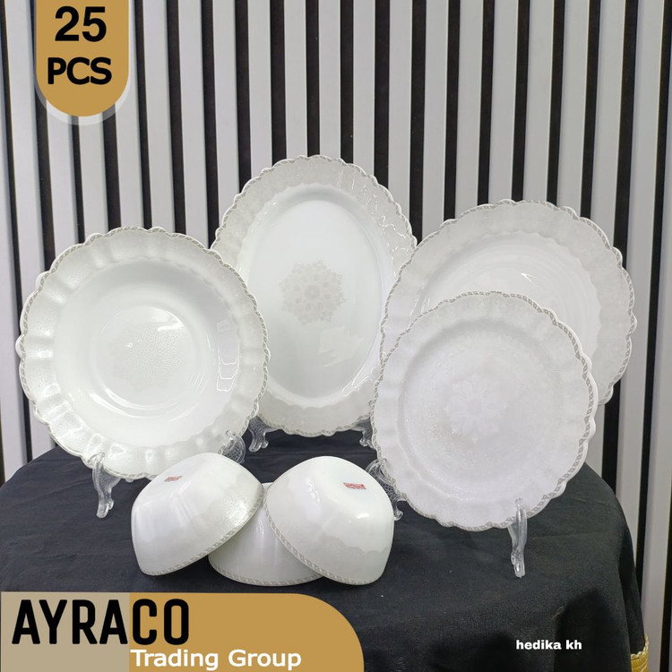 سرویس غذاخوری ۲۵ پارچه آرکوپال قالب کنگره با طرح جدید کفگل، انتخابی ایدهآل برای خانوادههای ۶ نفره است که به دنبال کیفیت بالا، دوام طولانی و طراحی شیک و ظریف هستند.