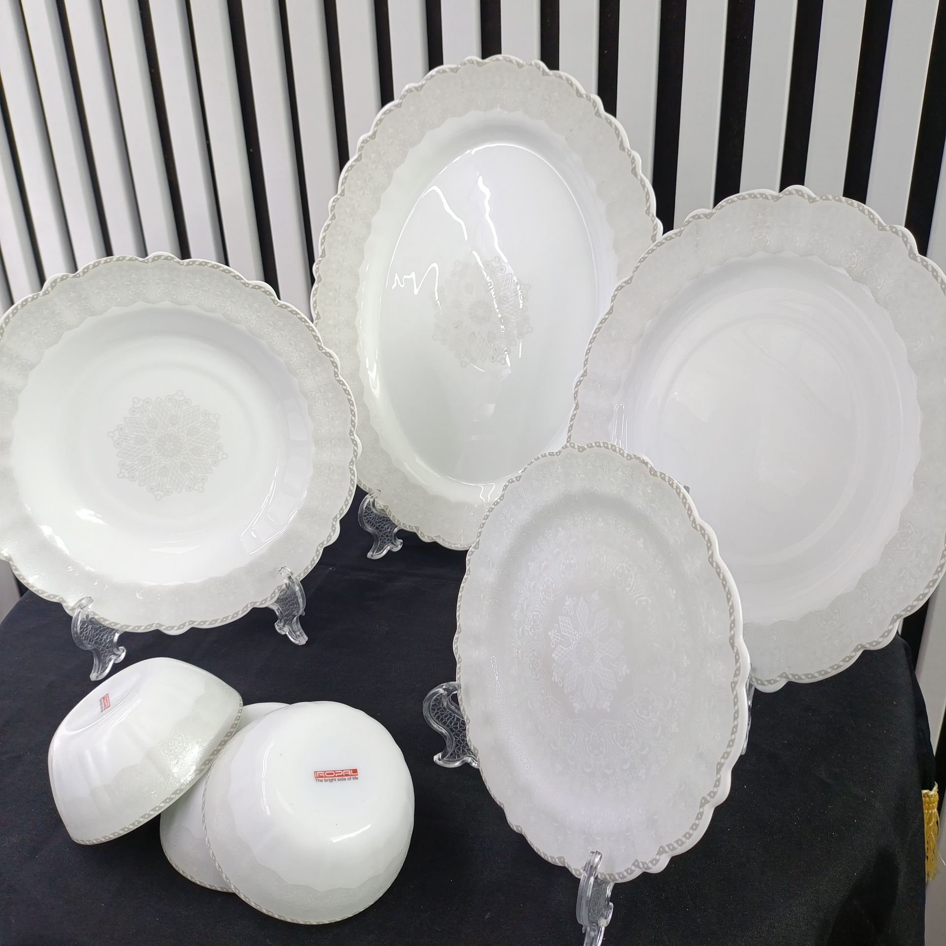 سرویس غذاخوری ۲۵ پارچه آرکوپال قالب کنگره با طرح جدید کفگل، انتخابی ایدهآل برای خانوادههای ۶ نفره است که به دنبال کیفیت بالا، دوام طولانی و طراحی شیک و ظریف هستند.