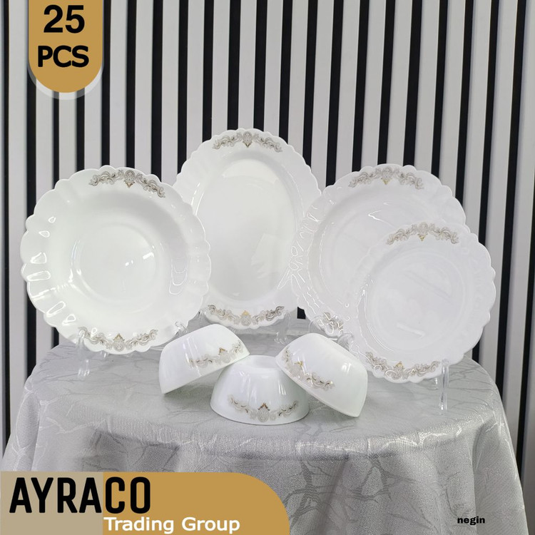سرویس غذاخوری آرکوپال نگین ۲۵ پارچه قالب کنگره – طرح جدید کفگل ۶ نفره | برند دینو و آیروپال