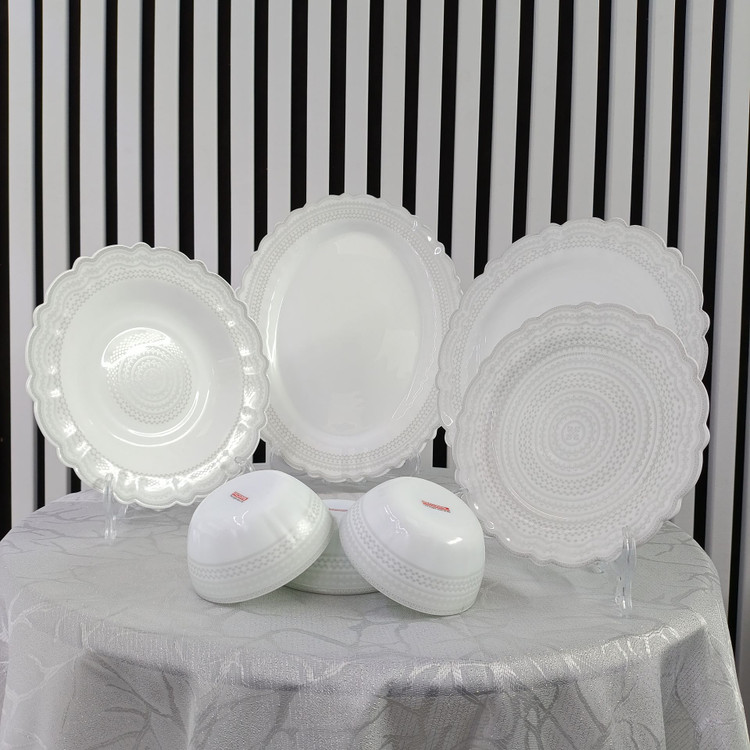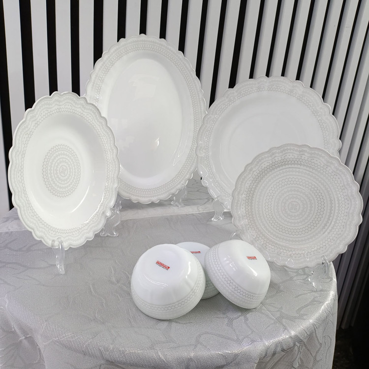 سرویس غذاخوری ۲۵ پارچه آرکوپال قالب کنگره با طرح جدید کفگل، انتخابی ایدهآل برای خانوادههای ۶ نفره است که به دنبال کیفیت بالا، دوام طولانی و طراحی شیک و ظریف هستند.