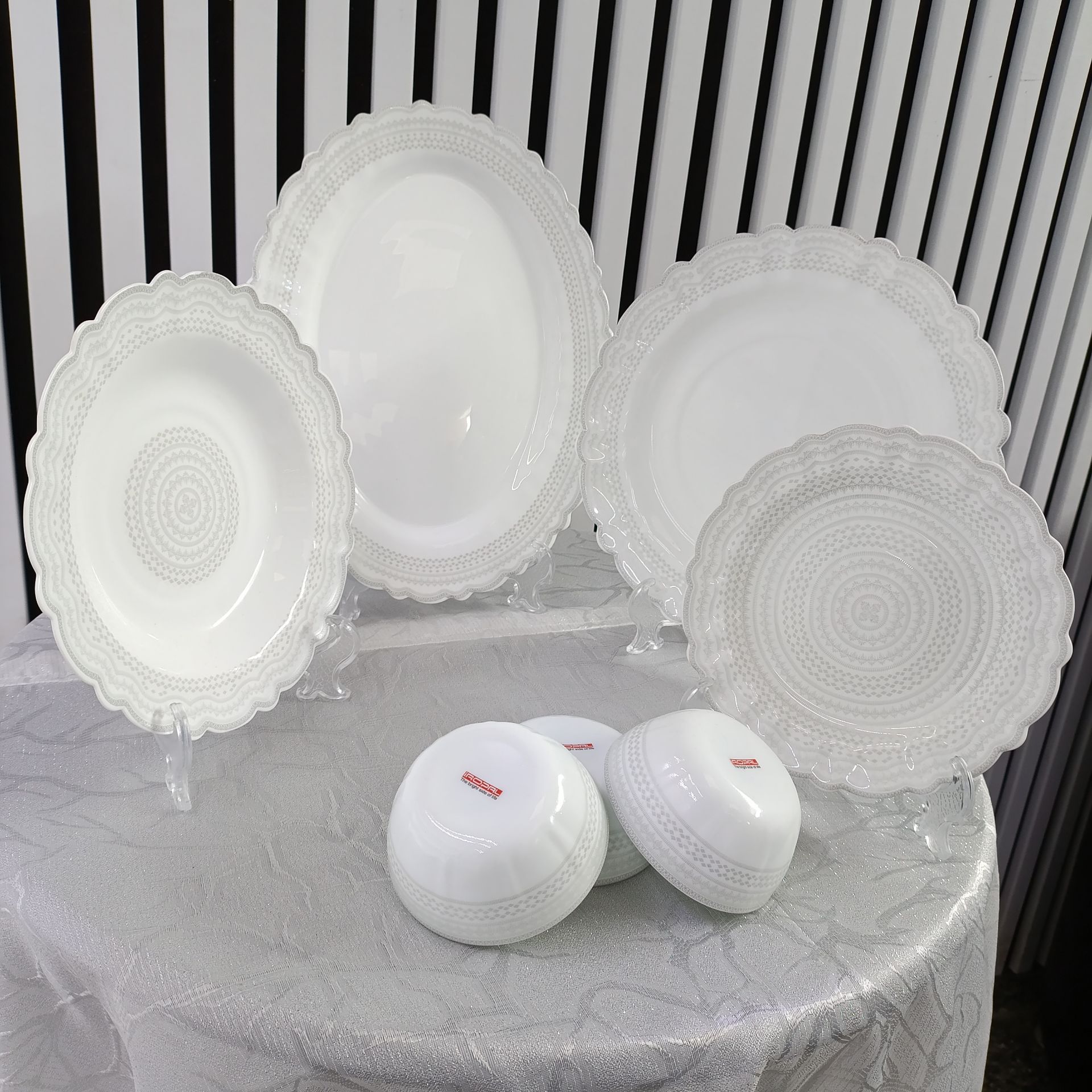 سرویس غذاخوری آرکوپال نلین خاکستری ۲۵ پارچه قالب کنگره – طرح جدید کفگل ۶ نفره | برند دینو و آیروپال