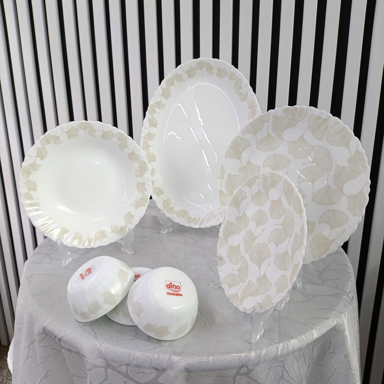 سرویس غذاخوری آرکوپال ۲۵ طرح28010کرم پارچه قالب پیچ – ویدا، ۶ نفره | برند دینو و آیروپال