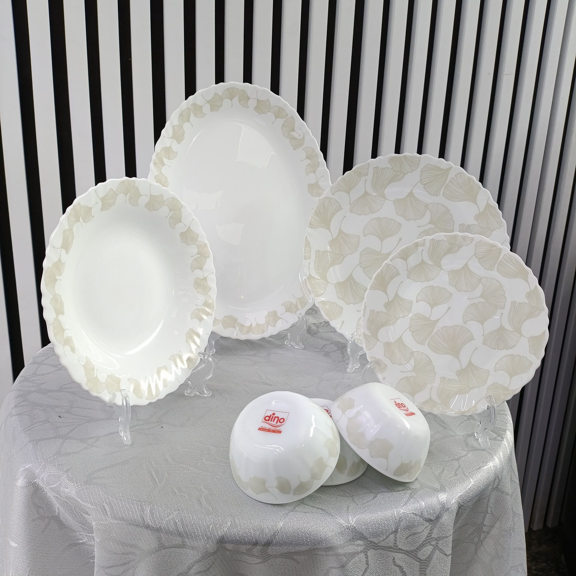 سرویس غذاخوری آرکوپال ۲۵ طرح28010کرم پارچه قالب پیچ – ویدا، ۶ نفره | برند دینو و آیروپال