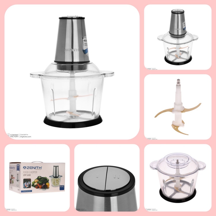 Zenith ZFP-1438 Glass Food Chopper with 500W Copper Motor and 4 Titanium Blades