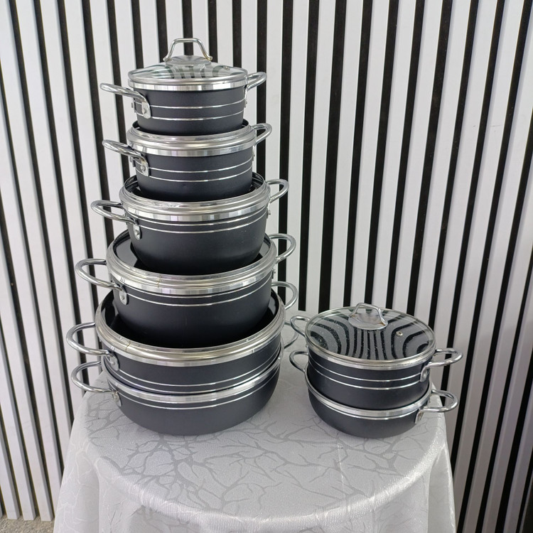 سرویس ۱۴ پارچه قابلمه مشکی گرانیتی اپیروس – مجموعه حرفه‌ای قابلمه و تابه با پوشش مقاوم
