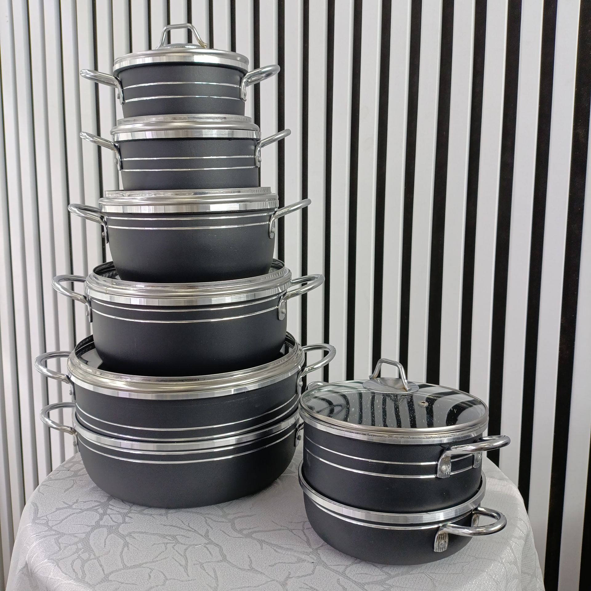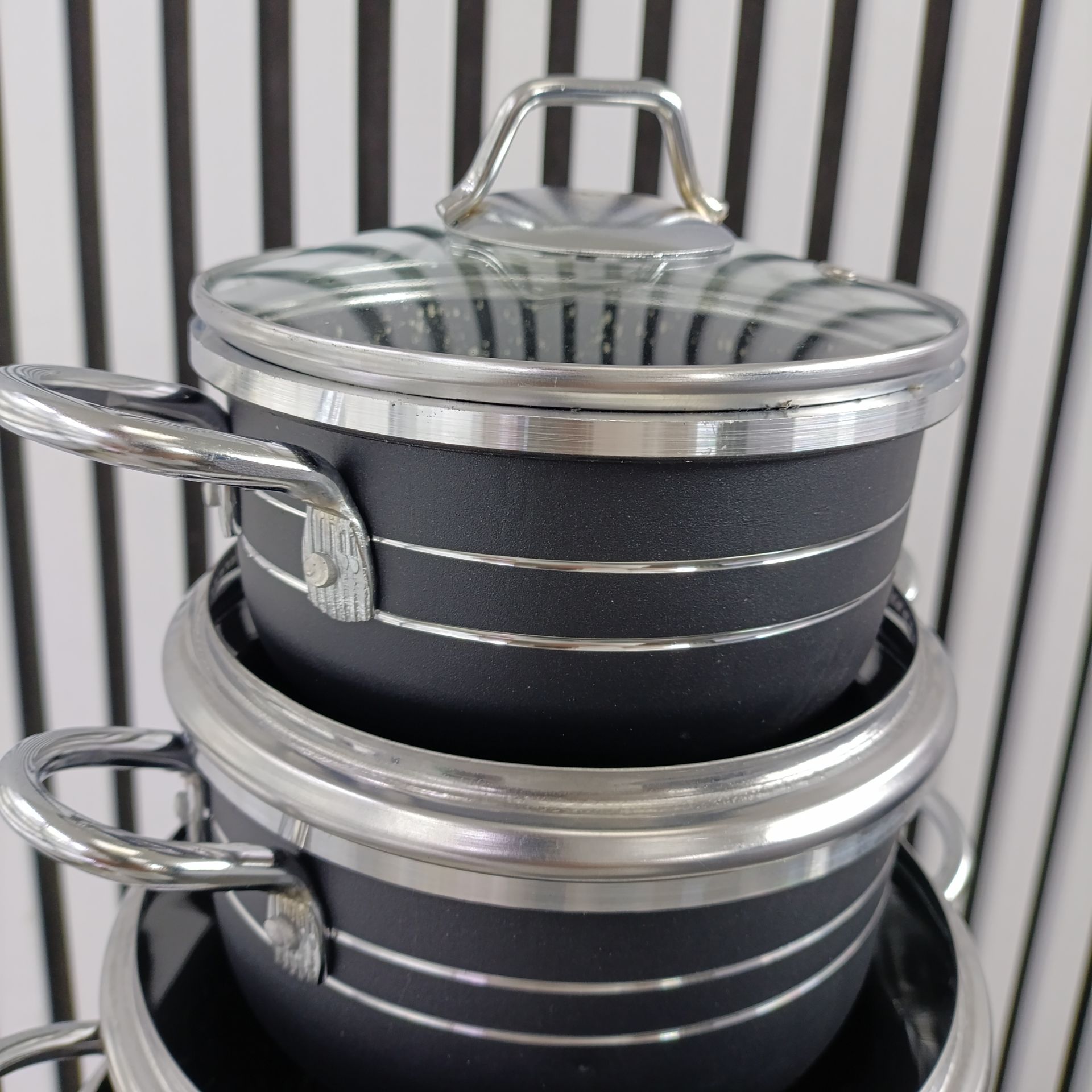 سرویس ۱۴ پارچه قابلمه مشکی گرانیتی اپیروس – مجموعه حرفه‌ای قابلمه و تابه با پوشش مقاوم