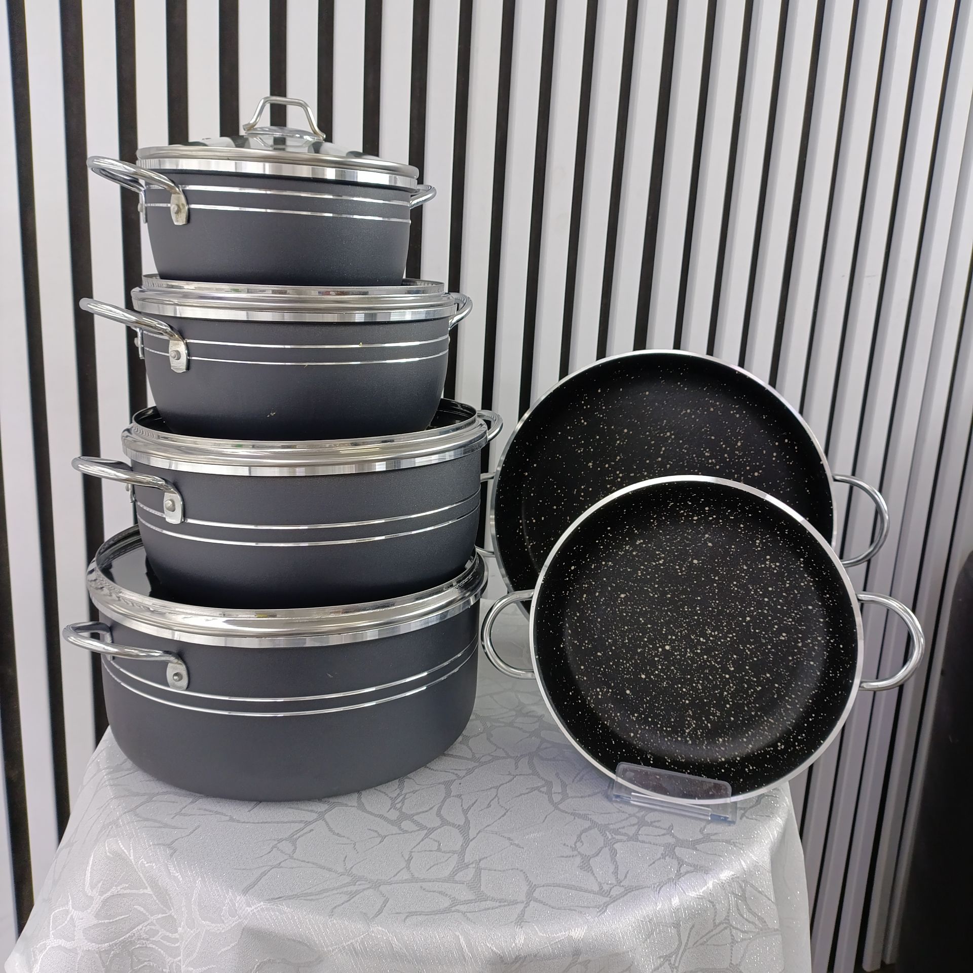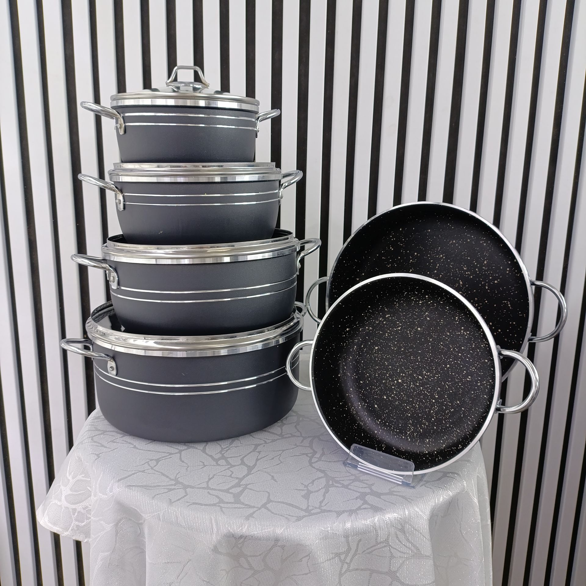 سرویس ۱۰ پارچه قابلمه اپیروس مشکی گرانیتی – مجموعه حرفهای قابلمه و تابه در سایزهای بزرگ و کاربردی