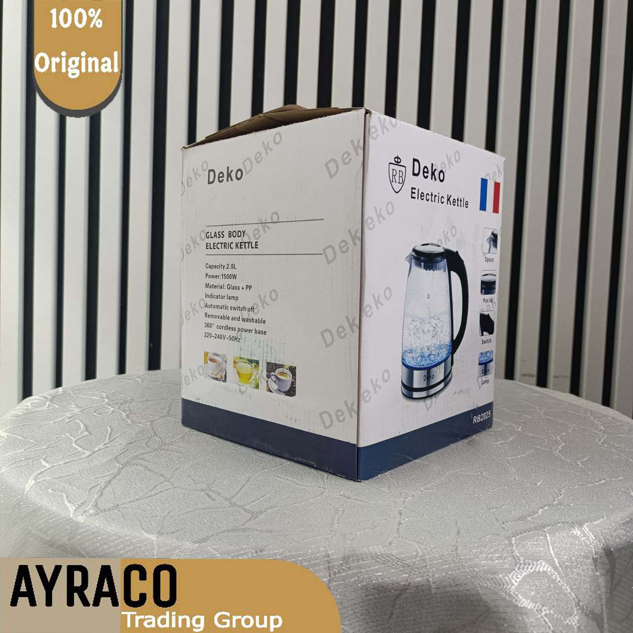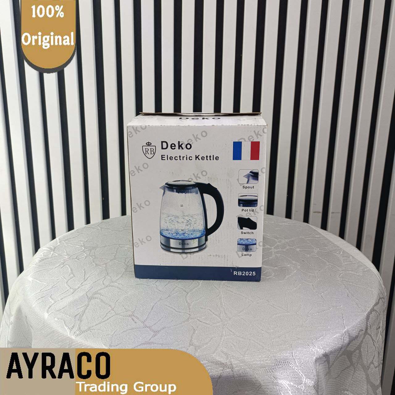 کتری برقی برند دکو بدنه شیشهای مدل RB2025 | کتری برقی شیک، سریع و کاربردی