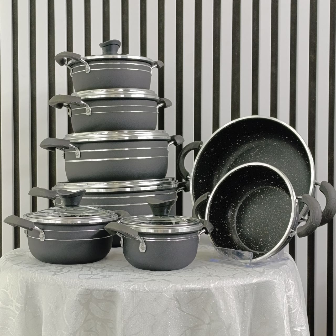 این سرویس 14 پارچه شامل قابلمههای با اندازههای متنوع است که پاسخگوی نیاز خانوادههای متوسط تا پرجمعیت در تهیه آشپزی روزمره و مهمانیها میباشد. طراحی استاندارد و کیفیت ساخت بالا در کنار نگهداری و شستوشوی آسان باعث شده این سرویس یکی از انتخابهای برتر در سایت آرکوکام باشد.