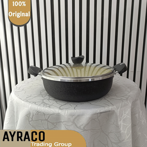 تابه گرانیتی برند زرفام سایز 28 ( Zarfam ) با درب پیرکس | مقاوم و حرفه ای برای آشپزخانه