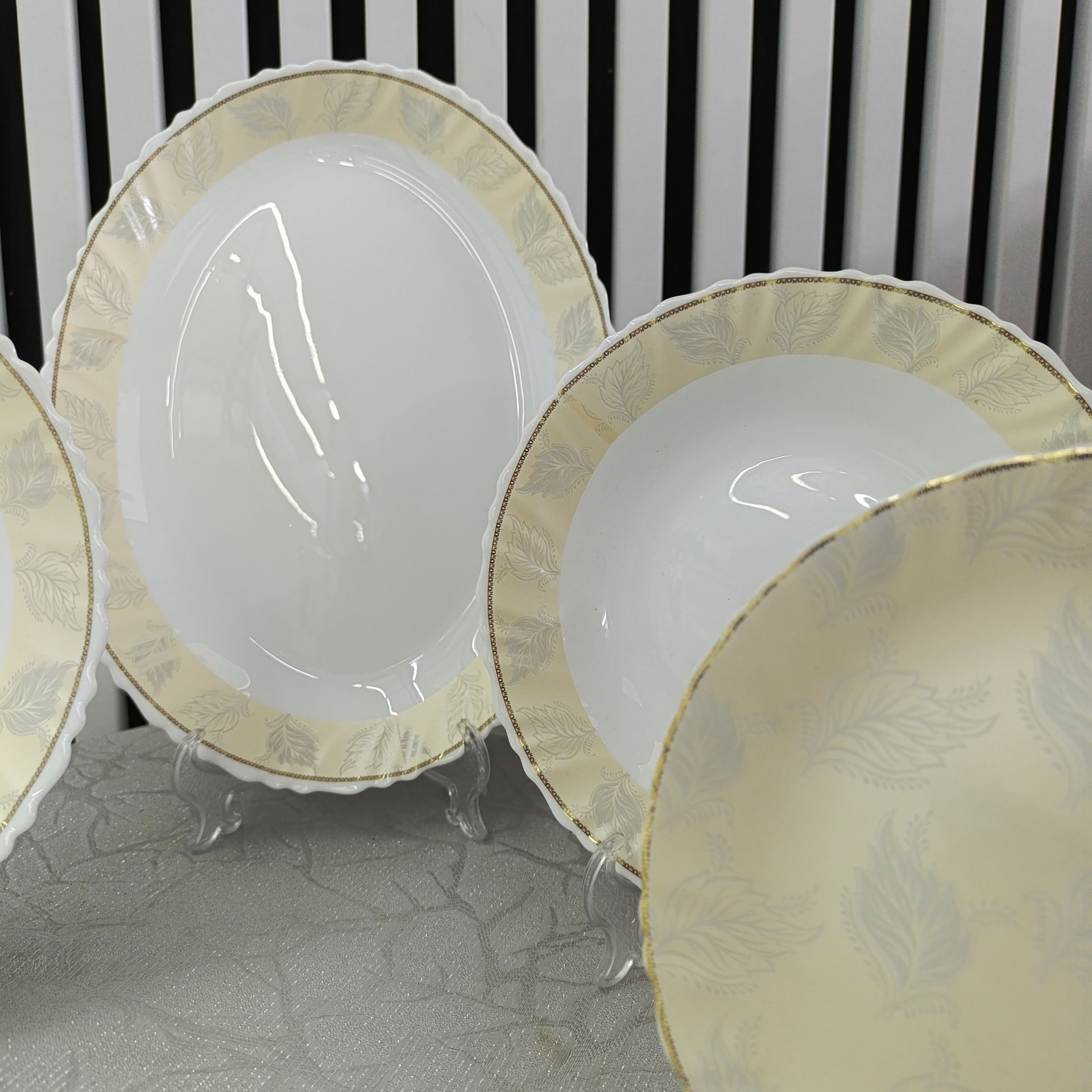 سرویس غذا خوری 25 پارچه کرم آبی برند لئون | خرید ست بشقاب و ظروف غذاخوری