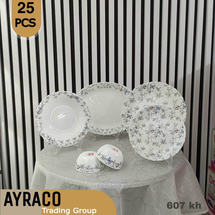 سرویس غذاخوری ۲۵ پارچه 607 خاکستری برند دینو | خرید سرویس غذاخوری 6 نفره