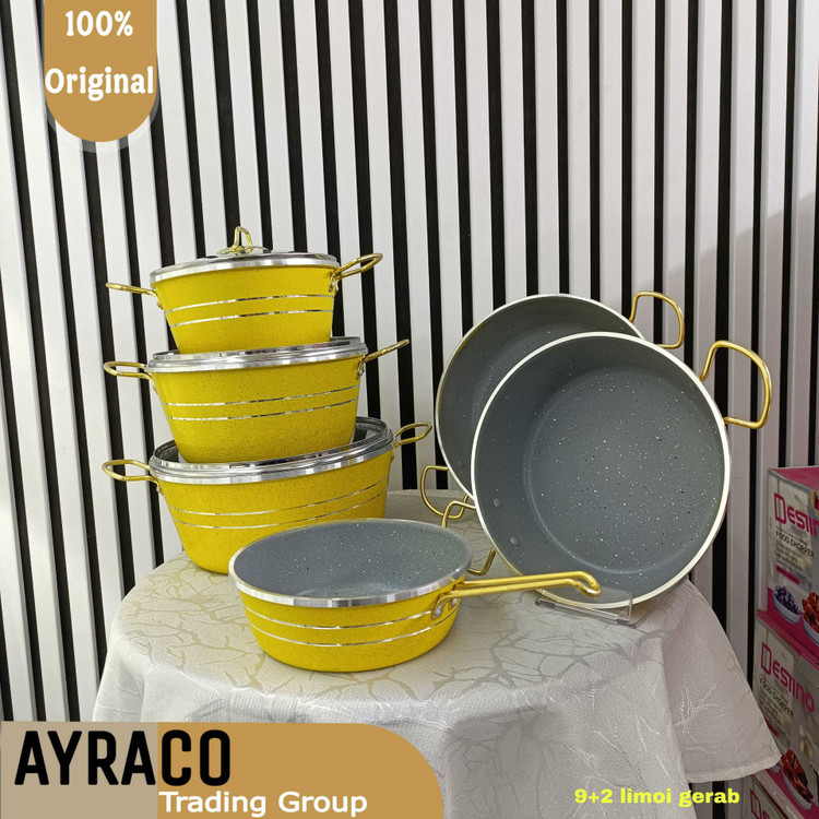سرویس قابلمه 9 برند گراپ ( Grap ) رنگ لیمویی | خرید ست قابلمه تفلون 9 پارچه گراپ