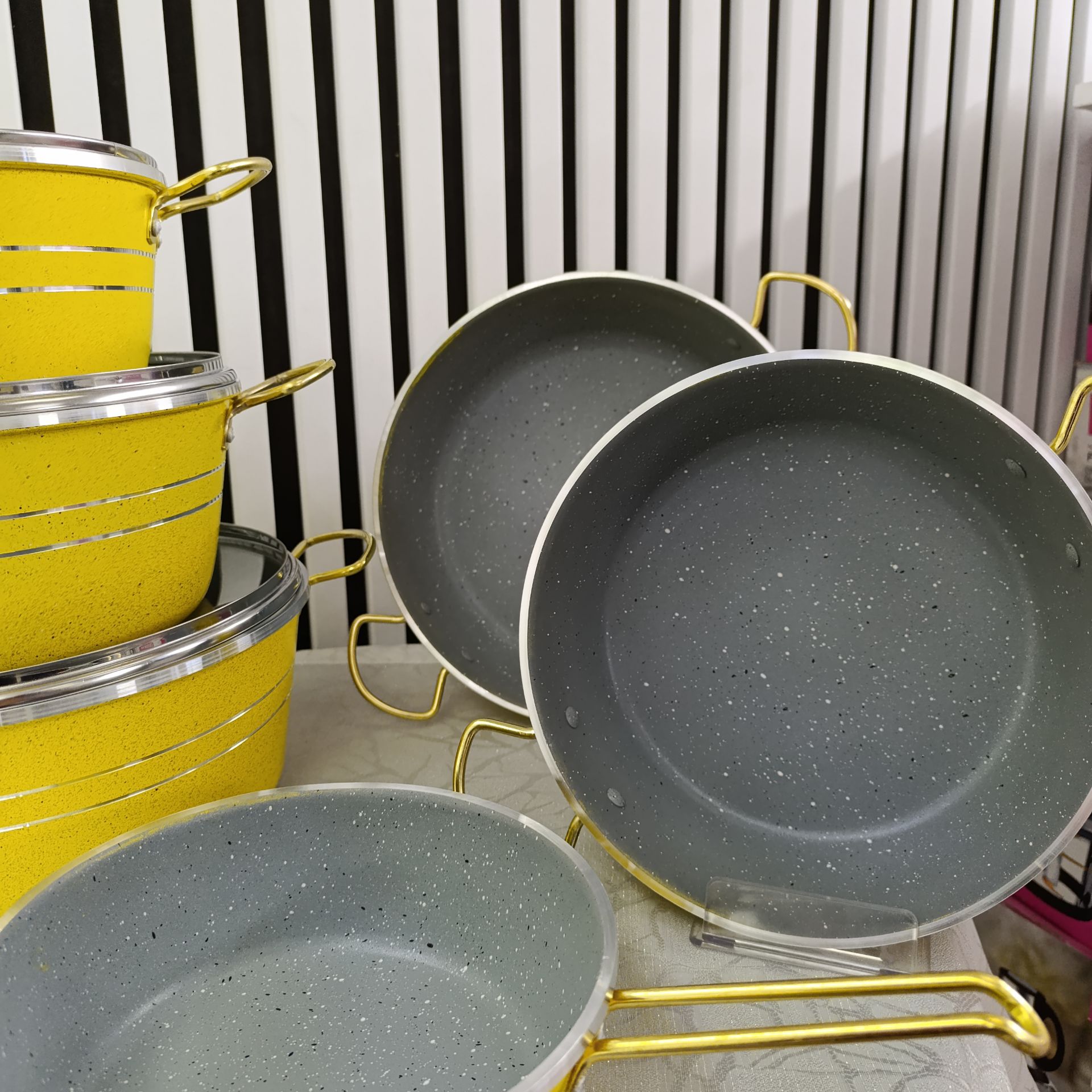 سرویس قابلمه 9 برند گراپ ( Grap ) رنگ لیمویی | خرید ست قابلمه تفلون 9 پارچه گراپ