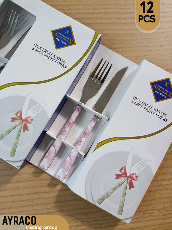 کارد و چنگال طرح ماربل کد 207 گزینه ایده آل برای خانواده های شیک و لوکس است این محصول طرح و رنگ مختلف دارد مناسب با هر سلیقه ای است جنس کارد و چنگال از استیل ضدزنگ ساخته شده است.